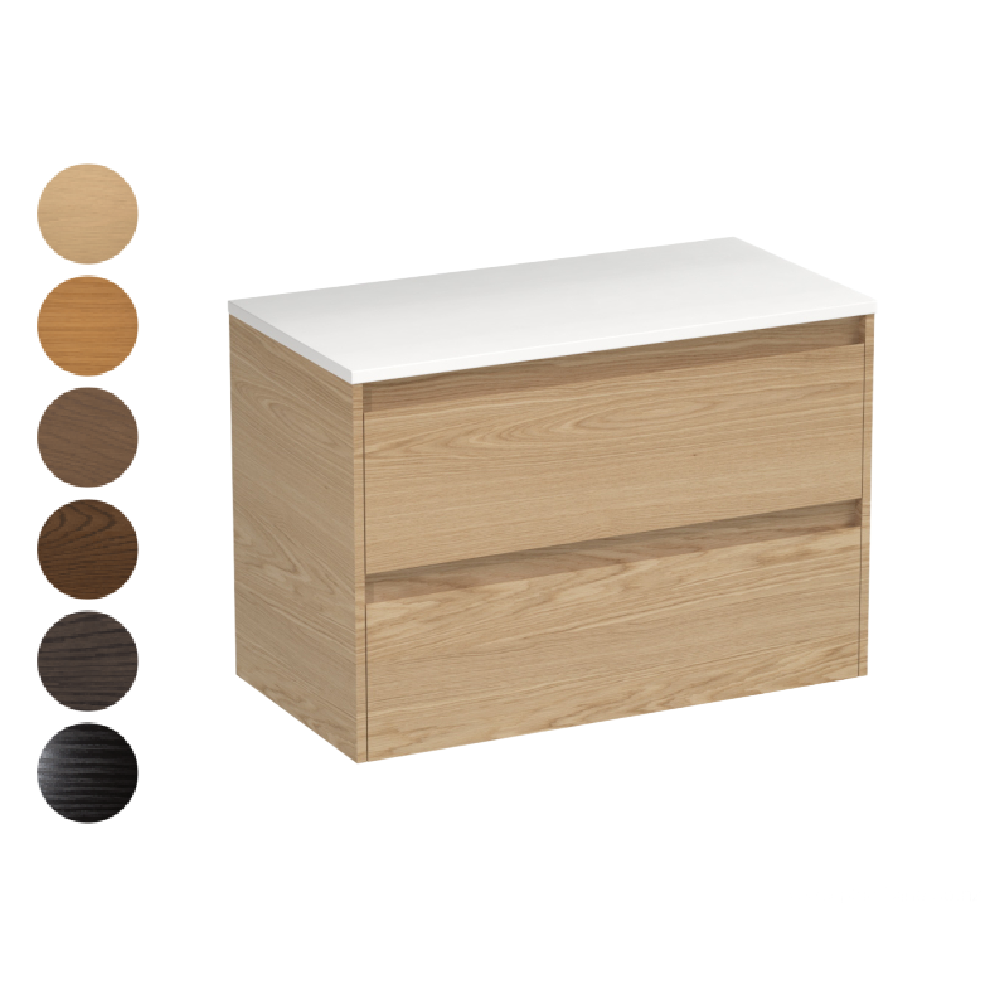 Tap holes and waste holes can easily be drilled in the solid surface tops with hole saws supplied, or top can be cut out for inset basins on site by installer using a jig saw.