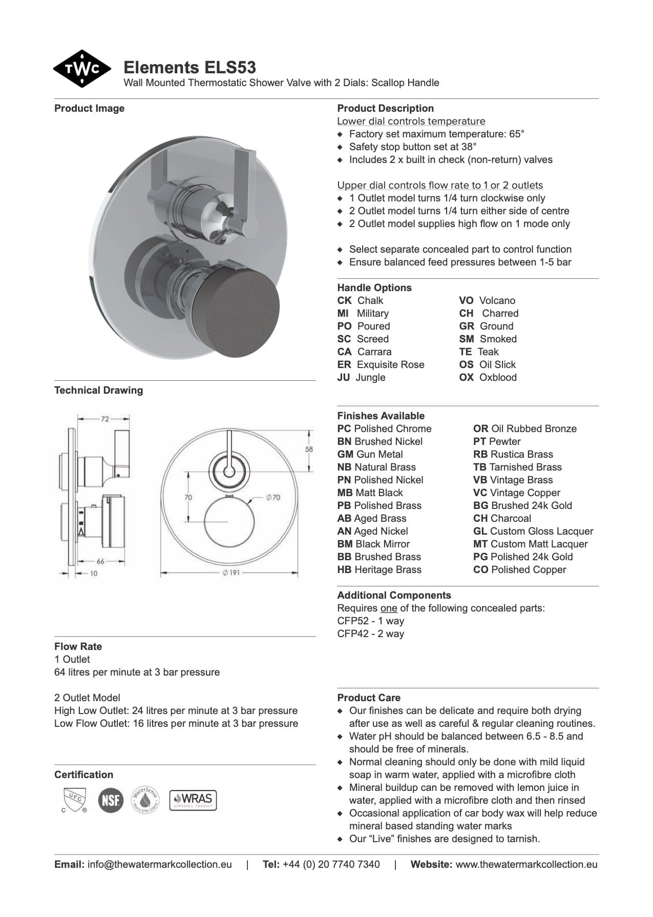 Comes with CFP52 (1 way) or CFP42 (2 way) concealed parts. Please note this mixer can be used as a one way flow shower mixer, where one dial adjusts temperature and the other adjusts pressure. It can also be used as a two way flow diverter mixer to change the direction of the water flow. If used as a diverter, one dial will adjust temperature and the other will adjust both pressure and the direction of the water flow.