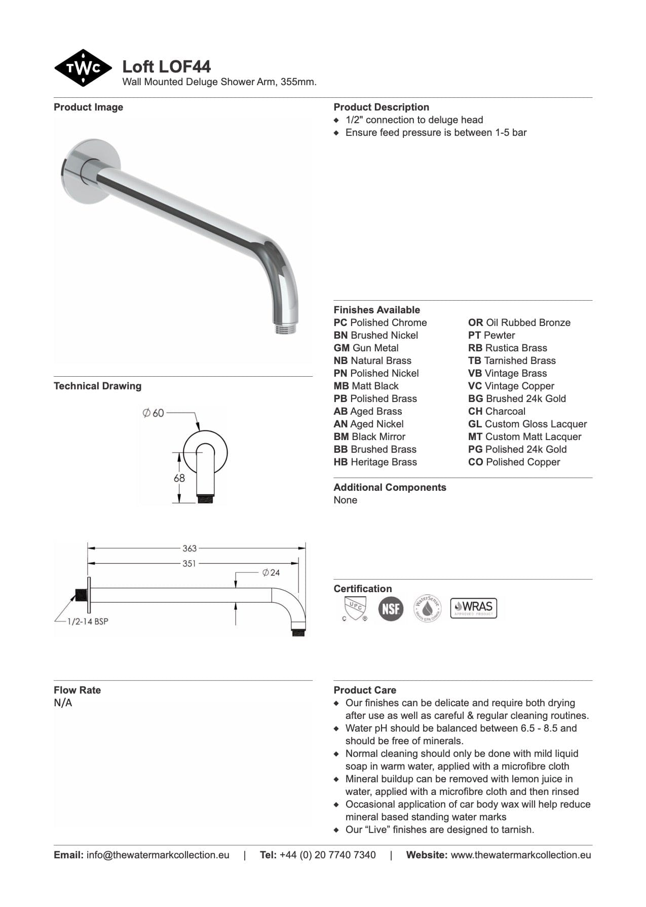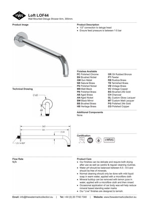 The Watermark Collection Loft Wall Mounted Shower Arm 355mm